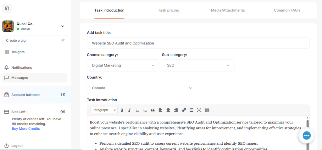 A detailed and clear description helps clients understand your service and increases your chances of getting orders.