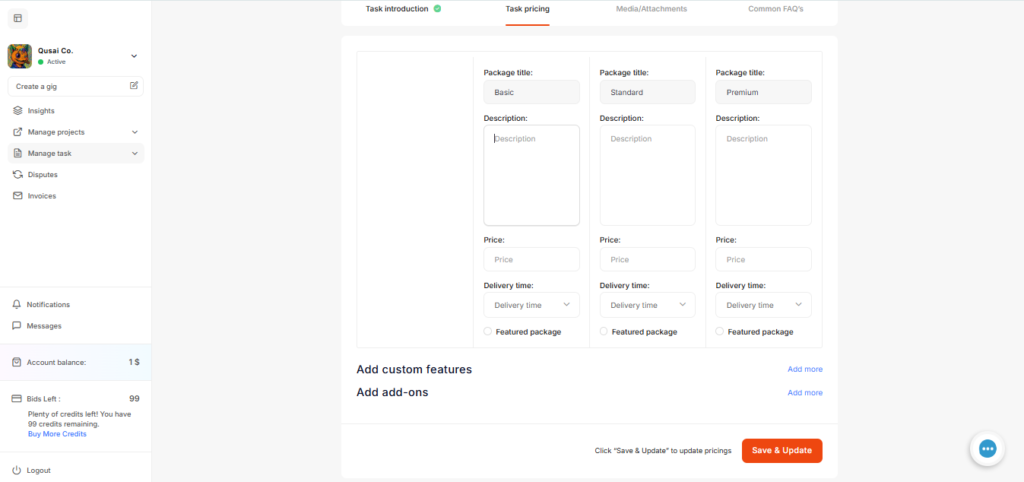 - Set pricing and packages in Task pricing